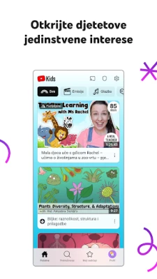 Uronite u svijet sigurne zabave i učenja uz YouTube Kids – platformu stvorenu s misijom da djeci pruži inspirativan i zanimljiv videosadržaj, dok roditeljima osigurava potpuni mir. Uz intuitivno sučelje i bogatstvo mogućnosti, vaše će dijete na mreži istraživati nove strasti, poticati kreativnost i graditi samopouzdanje, sve to unutar brižno kuriranog okruženja. Omogućite im da slobodno istražuju, dok vi znate da su u sigurnim rukama.