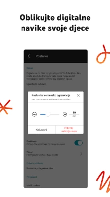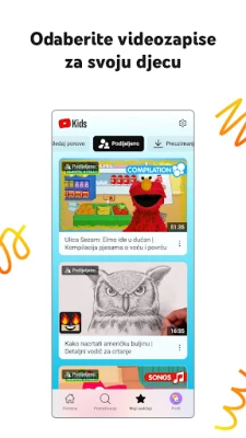 Osim pažljivog odabira, YouTube Kids omogućuje roditeljima snažne alate za aktivno oblikovanje dječjeg iskustva. Jednostavno ponovno otkrijte i dijelite omiljene trenutke putem kartice „Gledaj ponovo", stvarajući tako zajedničke uspomene. Naši robusni mehanizmi roditeljskog nadzora omogućuju vam blokiranje nepoželjnih sadržaja i prijavljivanje bilo čega što smatrate neprimjerenim, osiguravajući tako kontinuirano sigurno okruženje za cijelu obitelj. Nadalje, s ugrađenim odbrojavanjem, možete potaknuti zdrave navike korištenja ekrana, nježno podsjećajući djecu na pauzu kako bi naučene vještine primijenila u stvarnom svijetu. Pomažemo vam da odgajate znatiželjne umove i istovremeno stvarate uravnotežen pristup digitalnom svijetu.